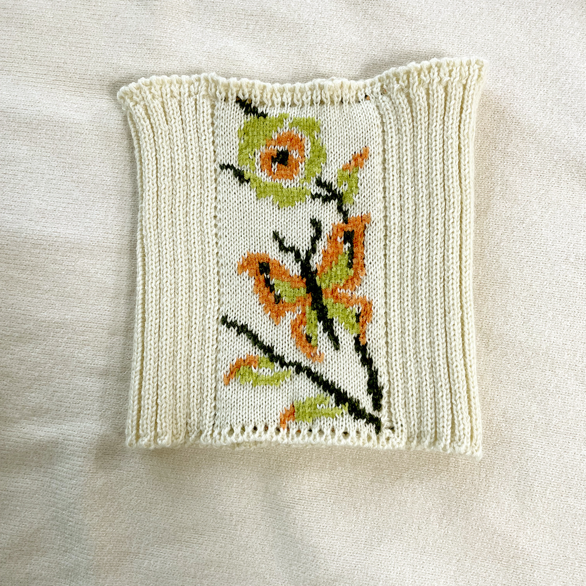Butterfly Jacquard Gloves and Scarf Set, Knitted Half-finger Gloves and Knitted Scarf